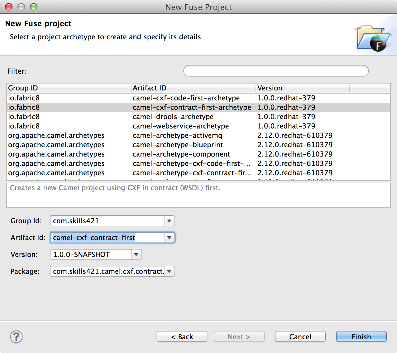 - Select io.fabric8 :: camel-dxf-contract-first-archetype – this is the default