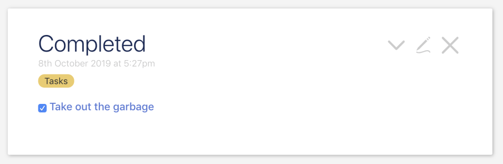 By checking and unchecking our task we can move it from ToDo to Completed and back again.
